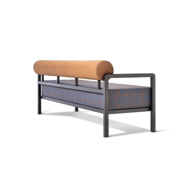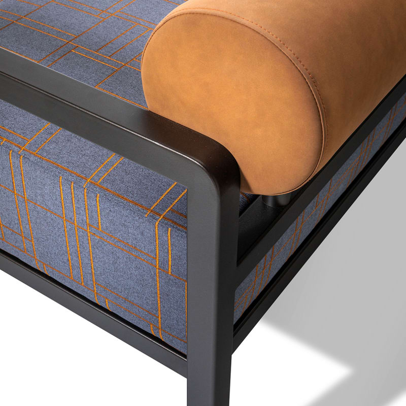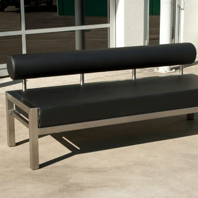 Modern lounge seating design. Mix and match upholstery fabrics with a powder-coated or satin steel frame to suit many commercial interior spaces.