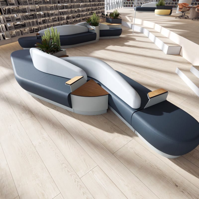 Modern, modular, 60° table design. Mix and match multipurpose compact laminates, solid surfaces, and powder-coat colours to create a unique look.