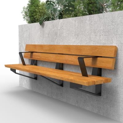Contemporary wall-mounted seat. Solid, trapezoidal, hardwood battens in colours with a sleek steel frame in zinc-primed powder-coat finishes.