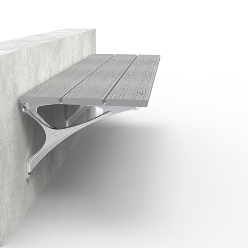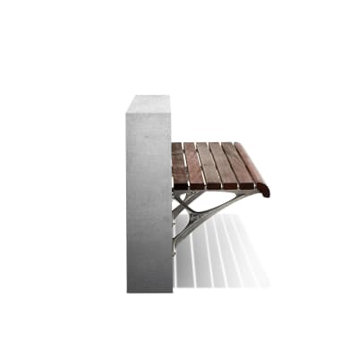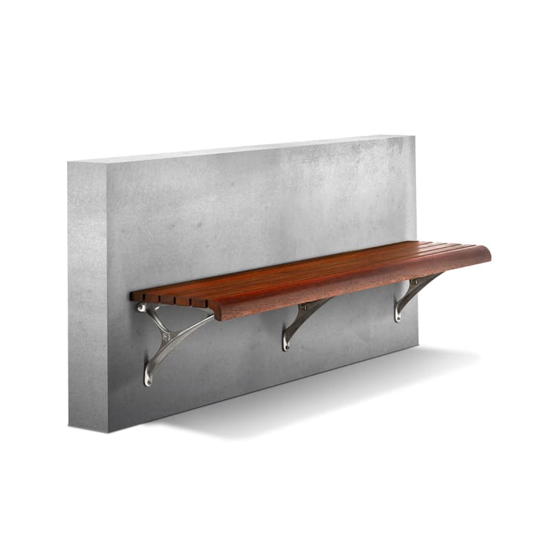 Timeless wall-mounted seating. Hardwood, Duraslat™ XG, aluminium battens with an elegant cast aluminium frame in powder-coat finishes or polished.