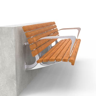 Timeless wall-mounted cantilevered seat AS1428.2. Hardwood battens with an elegant cast aluminium frame in powder-coat finishes or polished.