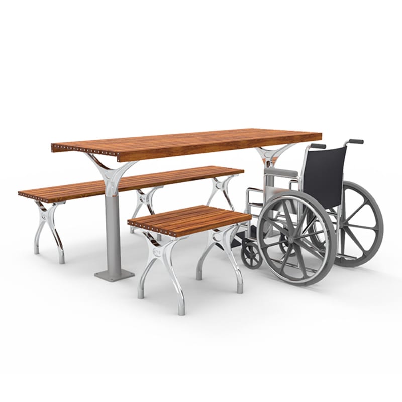 Post table AS1428.2 with side access. Hardwood, Duraslat™ XG, aluminium battens with a cast aluminium frame in powder-coat finishes or polished.
