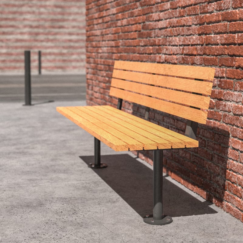 Simple, durable seat design. Hardwood, Duraslat™ XG, aluminium battens with steel posts and base plates in powder-coat or galvanised finishes.