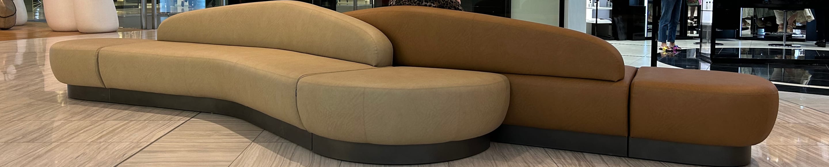 Westfield Miranda engaged us to elevate the experience in their luxury shopping area by introducing new, high-end furniture. To achieve this, they selected our Nexus Concave Seat, upholstered in Chamois vinyl from Baresque for a refine aesthetic. The Nexus collection is renowned for its sophisticated curved design and exceptional quality, making it the perfect addition to create inviting meeting points and relaxation areas in upscale retail environments.